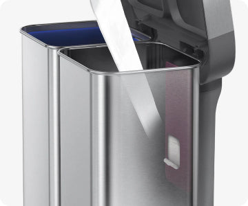 Our dual compartment option makes sorting rubbish look good! Each side has a generous capacity, and emptying is easy with a plastic bucket on the recycling side and a liner pocket in the rubbish compartment.